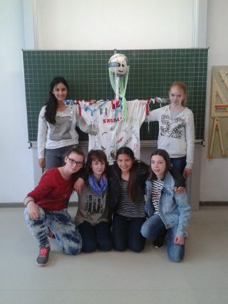 Die Schüler der 5. und 6. Klasse haben dieses Jahr am "Kids for Kitz" Programm teilgenommen (http://action-for-kitz.de/action_for_kitz.html). Um Rehkitze in den Feldern zu schützen, bauten die Schüler Vogelscheuchen, die durch ihre reflektierenden Wimpel wilde Tiere abhalten sollen, sich auf den Feldern zu verstecken. Anbei seht ihr zwei der Scheuchen. Natürlich gab es noch mehr davon. Die Schüler können alle Bilder im Klassentauschverzeichnis der Schule einsehen.