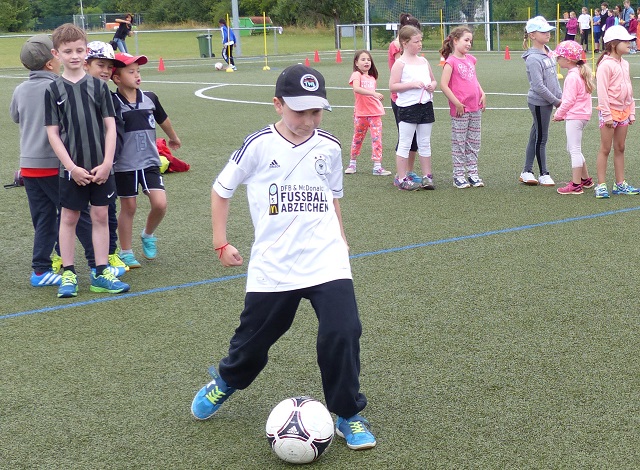 Teilnehmende Schüler konnten auf dem Kleinfeld gegeneinader antreten, sich im Dribbling und Elfmeterschießen üben und im "Fanclub" das Ballheldenlied lernen. Versorgt wurden die Kinder durch Kuchenspenden der Eltern aus Niedernberg und Großwallstadt.