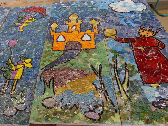 Das Mosaik Projekt, das im Verlauf des Schuljahres entstanden ist, kurz vor der Fertigstellung