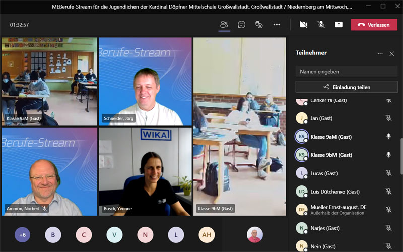 Die 9. Klassen nutzen alle technischen Neuerungen im Klassenraum. Seit der Rückkehr ins Klassenzimmer nach den Osterferien sind diese mit digitalen Tafeln, einer hochauflösenden Objektkamera und einem WLAN-Hotspot ausgestattet. Die Einladung der Firma WIKA, die Berufe der Metall- und Elektroindustrie sowie den Betrieb selbst in einer Videokonferenz kennenzulernen, kam uns sehr gelegen, um nicht nur die Schüler mit wichtigen Infos zur Berufswahl zu versorgen, sondern auch die neue Technik auf den Prüfstand zu stellen. Die Neuntklässler verfolgten die Präsentationen nicht nur über die elektronische Tafel, sondern nahmen auch interaktiv mit ihren Smartphones daran teil. So konnten sie beispielsweise mit den beteiligten Personen chatten und mögliche Fragen direkt loswerden. Außerdem wurde durch das Team des ME-InfoTrucks eine App vorgestellt, die einen umfangreichen Überblick über alle Berufe der ME-Industrie sowie mögliche Ausbildungsstellen in der Umgebung gibt. Diese App konnte direkt unter die Lupe genommen werden. Wir danken der Firma WIKA und dem Team des ME-InfoTrucks für diese informative Veranstaltung und der Gemeinde Großwallstadt für diese überragende technische Ausstattung unserer Klassenräume.