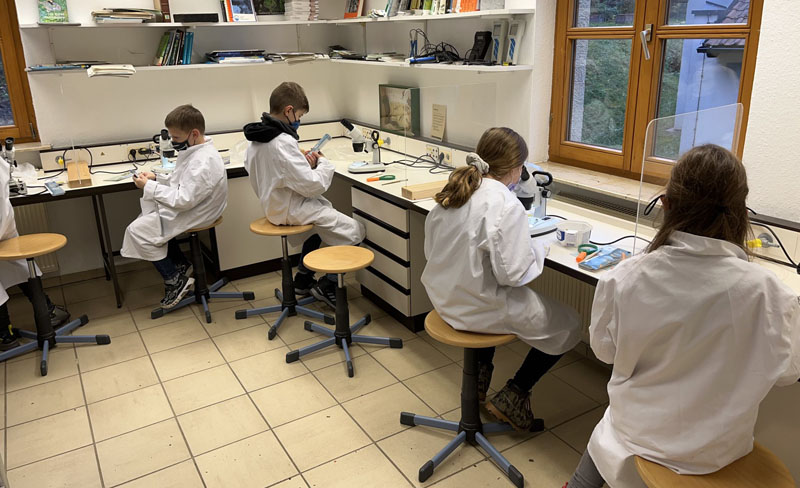 Die beiden vierten Klassen befinden sich zur Zeit im Schullandheim in Hobbach. Auf dem Programm stehen Aufgaben und Workshops zum Thema "Wasser" und das Klettern in den Anlagen des Schullandheims. Auf unseren Bildern sehen sie die Kinder in der Turnhalle an der Kletterwand und draußen im Bach, bei der Entnahme von Proben, die anschließend im Labor untersucht werden. Nicht nur für die Sicherheit beim Klettern ist gesorgt, denn dort sind die Schüler gut vertäut, auch die Corona-Lage haben wir im Griff: Die Schüler werden auch, wie in der Schule mit Schnell- und Pooltests getestet, so dass alle am Ende der ereignisreichen Tage wieder gesund nach Hause kommen können. Wir wünschen den Schülern viel Spaß und eine gute Zeit.