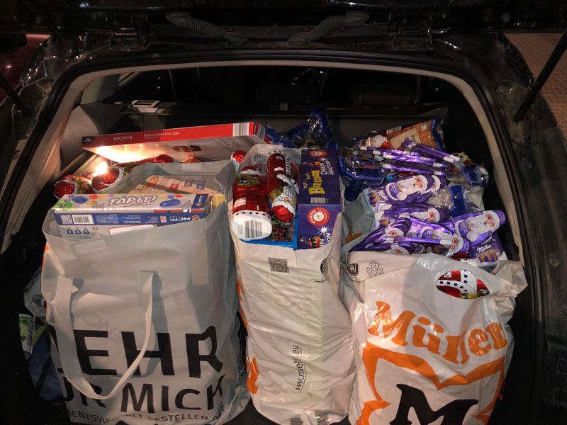 Mehr Geschenke und Süßigkeiten hätten auch nicht mehr ins Auto gepasst.