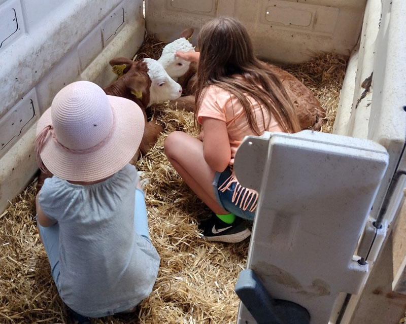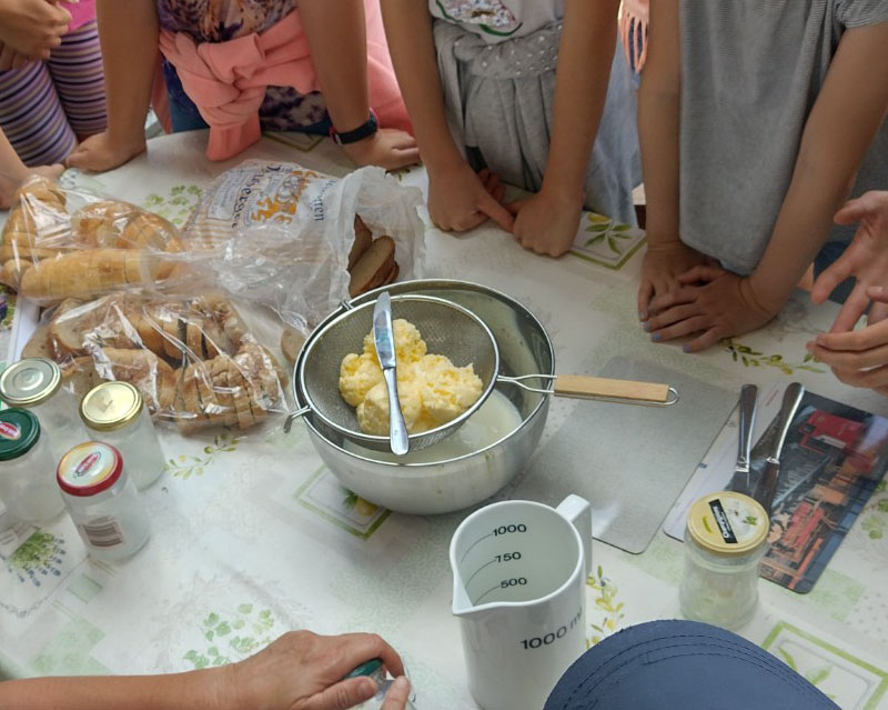 Beim Ausflug auf den Bauernhof der Familie Schandel, wo regionale Produkte herkommen, konnten die Schüler nicht nur süße Kälber streicheln, sondern auch Butter als Milchprodukt selbst herstellen und dann auch essen.