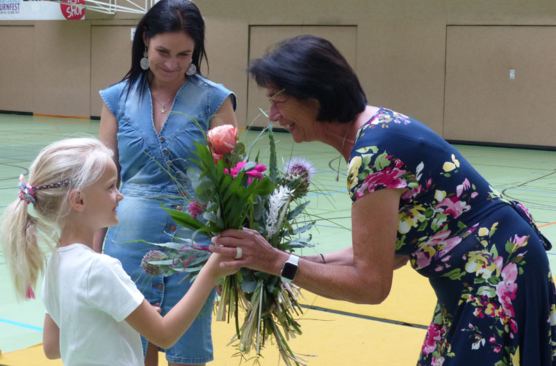 Fast die ganze Grundschule war zu einem Lied angetreten und feierte Frau Hein.