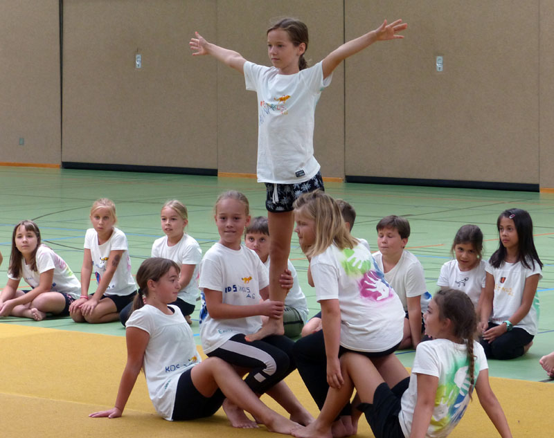 Die Schüler der Zirkus-AG zeigten nochmal ihre Programmhighlights vom Schulfest, die Anette Hein leider vor zwei Wochen verpasst hatte.