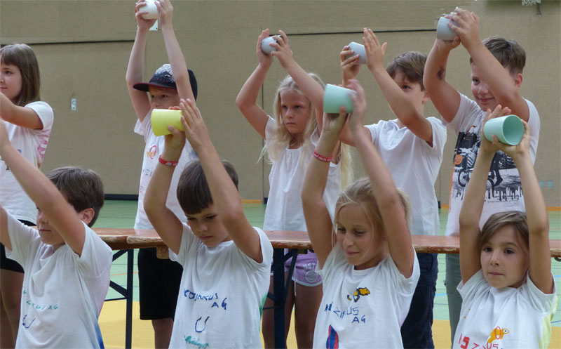 Schüler der dritten Klassen mischten den "Cup-Song" und einen populären Sea-Shanty zu einer klappernden und klatschenden Performance.
