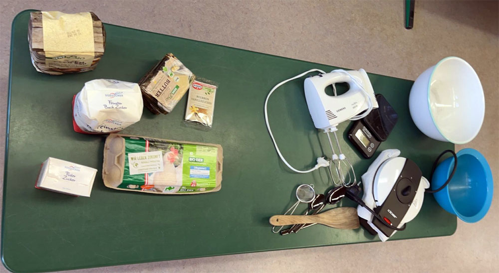 In den dritten Klassen steht das Schreiben einer Anleitung auf dem Programm und weil man dort Nützliches gern mit Leckerem verbindet, haben die Klassen eine Kochanleitung für Waffeln zusammengestellt, Zutaten und Arbeitsmittel bereit gelegt und dann genau nach Plan leckere Waffeln gebacken. Zwei Tage lang roch es verführerisch in der Aula des Grundschulgebäudes und die Fachlehrerdamen können die Schüler in ein paar Jahren dann bestens vorbereitet im Fach "Ernährung und Soziales" in der Mittelschule empfangen, wo dieses Vorwissen wieder regelmäßig gebraucht und angewendet wird.