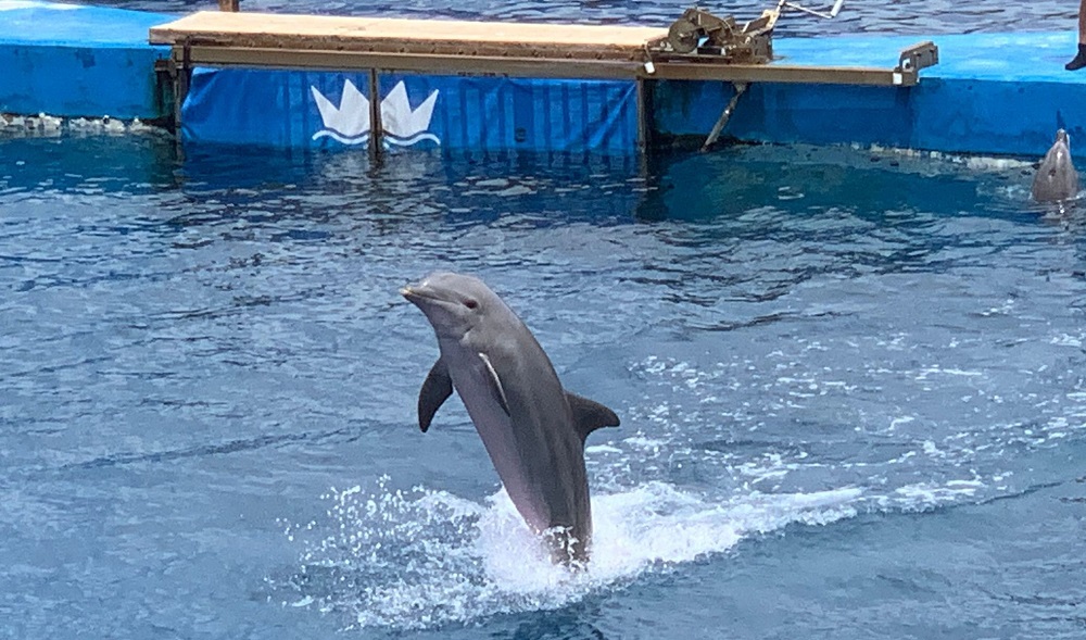 Tag 3: Alle im Oceanografico; Laut Herr Keßler: "Viel Wasser, mit vielen Fischen und vielen Menschen, die vielen Fischen im Wasser zuschauen!" (Im Bild allerdings ein Säugetier)