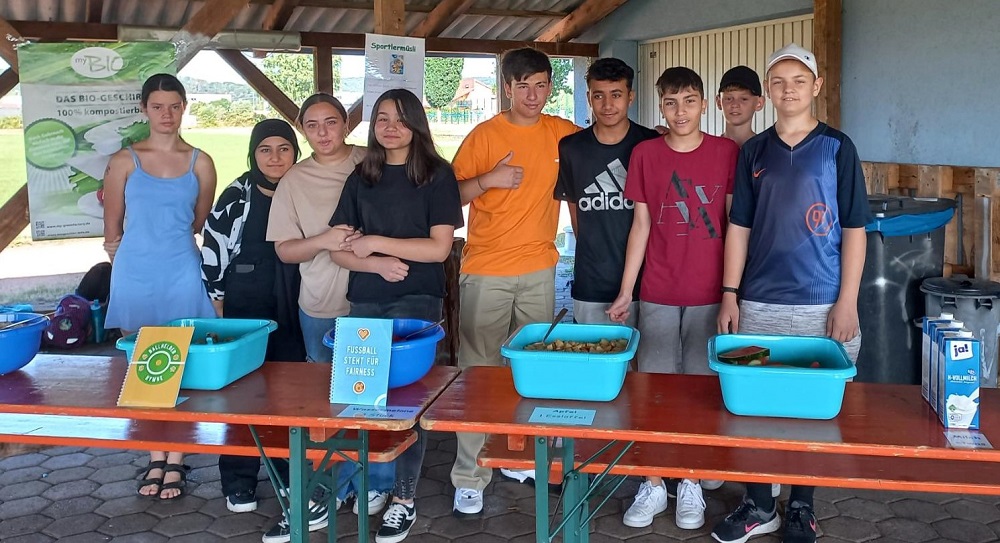 Am heutigen Ballheldentag spielten die Schüler der Grundschule wieder für den guten Zweck. Zum Auftakt des Tages stimmte die Zirkus-AG der 4. Klassen, die dieses Jahr nicht bei einem Schulfest auftreten können, auf den sportlichen Tag ein (Bild hinter dem "Weiterlesen"). Danach ging es für alle Schüler auf das Sportgelände des TVG, wo die Jahrgangstufen gegeneinander in Spielen auf dem Kleinfeld antreten konnten und vor allem fußballerische Aufgaben zu lösen waren: Dribbeln, Passen, mit dem Ball laufen und Torwandschießen gehörten dazu. Die Schüler der 8. Klasse der Mittelschule waren Stationen-Betreuer und alle Schüler konnten sich bei einem erfrischenden Joghurtmüsli von unserem Sponsor stärken.