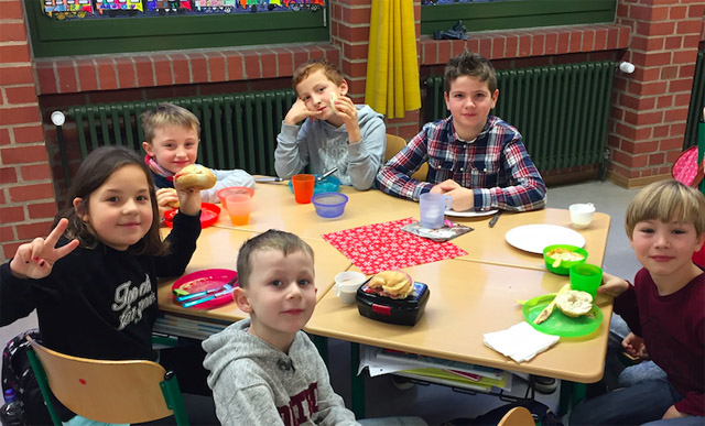 Am letzten Schultag vor den Weihnachtsferien ließen es sich die beiden 4.Klassen nicht nehmen und zauberten für ihre Patenkinder aus den 1.Klassen ein wunderbares Frühstück. In zwei Klassenzimmern wurden tolle Frühstücksbuffets mit allerlei Leckereien aufgebaut. Jedes Patenkind besuchte dabei seine Patin/ seinen Paten und verbrachte mit dieser/ diesem und vielen anderen ein gemütliches und spaßiges Frühstück. Dabei blieb wohl kein hungriges Kind zurück.