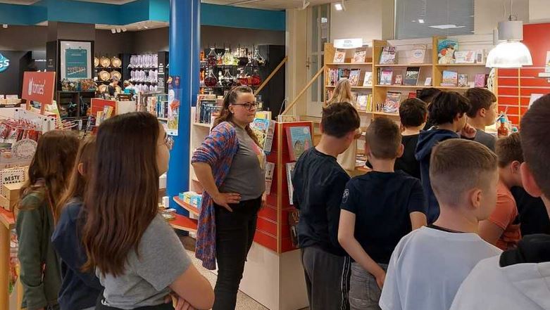 Wir, die Klasse 5a, sind am 16. Mai ins Buchkabinett nach Obernburg gegangen. Dort wurden wir nett begrüßt und bekamen eine Führung durch den Hintereingang, wo die Bücher gelagert und geliefert werden. Dann haben wir ein Rätsel gelöst. Als Abschluss haben wir ein Buch zum Welttag des Buches geschenkt bekommen und manche Kinder haben sich noch ein Buch gekauft. Danach sind wir zum Spielplatz am Main gegangen und hatten viel Spaß zusammen!