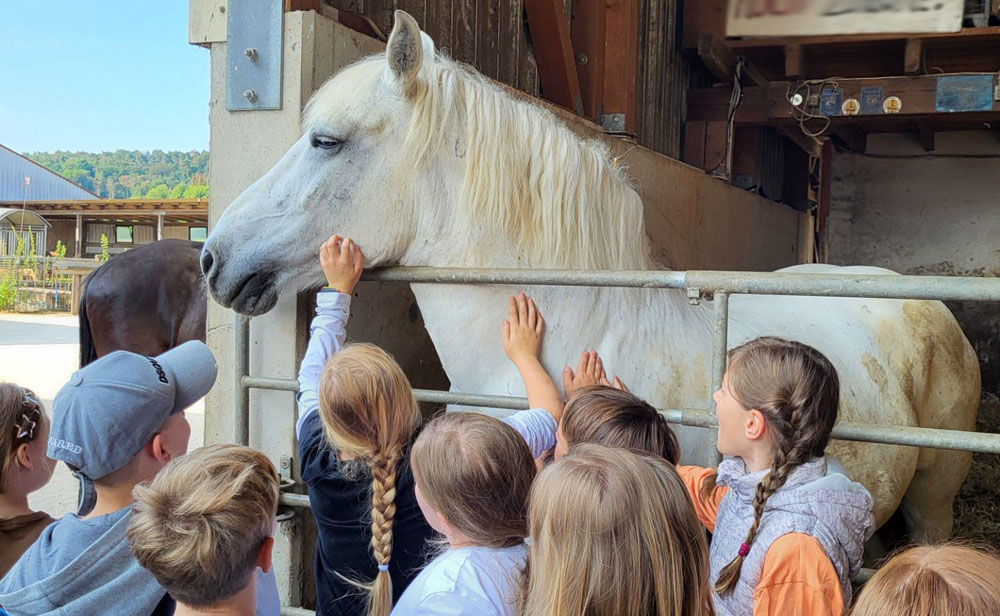 Die Klasse 3a besuchte am 02.07. den Lindenhof in Niedernberg. Zuerst stand ein kleiner Rundgang über den Bauernhof mit zahlreichen Tieren an. Im Anschluss hatten die Schüler die Möglichkeit sich im Voltigieren auf einem Pferd auszuprobieren. Dabei bewiesen die Kinder viel Mut und trauten sich fast alle auf einem Pferd zu stehen. Am Ende besuchten wir noch einmal die Hoftiere, wobei es die Katzenbabys den Drittklässlern besonders angetan hatten.