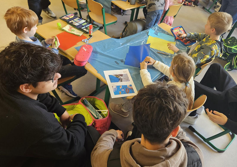In diesem Jahr helfen unserer Grundschüler wieder mit, die Aktions Kids for Kitz mit selbstgebastelten Scheuchen zu unterstützen. Die Warnscheuchen sollen helfen, dass Rehkitze von ihren Müttern rechtzeitig aus Feldern geholt werden, die demnächst gemäht werden sollen oder sich erst gar nicht dort ablegen. Mit Hilfe unsere "hauseigenen Jägers" Herr Metz und Schülern der 9. Klasse der Mittelschule haben die Erstklässler viele bunte, flattrige und raschelnde Scheuchen geklebt und gestaltet. Alle hoffen so, 2024 wieder zum Schutz des Reh-Nachwuchses beizutragen.
