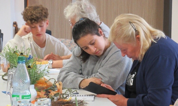 Es ist Dienstagnachmittag. Im Seniorenraum der alten Schule sitzen heute nicht nur Senioren. Nein, neben jedem älteren Menschen sitzt ein Jugendlicher. Beide beugen sich über ein Handy, das zwischen ihnen auf dem Tisch liegt. Was ist hier los? Es ist der Handykurs für Senioren, organisiert vom Seniorenbeirat und betreut von Monika Schuler. Schon seit zwei Wochen trifft Dienstag und Donnerstag die Generation der Großeltern auf einige Schüler der achten und neunten Klasse der Kardinal-Döpfner-Schule. Hier haben sie die Möglichkeit, von echten „Handy-Kennern“ den richtigen Umgang mit dem Smartphone zu lernen. Wie sendet man eine Nachricht? Wie speichert man seinen Fingerabdruck? Wie kann man mit dem Handy einen QR-Code einscannen? All diese Fragen können die Schüler souverän beantworten und diese Dinge gemeinsam mit ihrem Seniorpartner an dessen Handy anwenden. Die Schüler helfen, technische Probleme zu lösen, erklären Abläufe und machen modernste Techniken zugänglich.