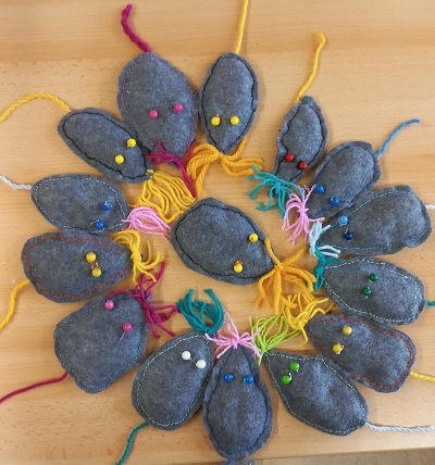 Die Klasse 3a hat im WG-Unterricht kuschelige Handwärmer für die kalte Jahreszeit gebastelt, die mit Dinkelkörnern gefüllt sind. Jetzt hat man was, um die Hände in den Jackentaschen warm zu halten oder auch ein Spielzeug, das über den Tisch huschen kann.
