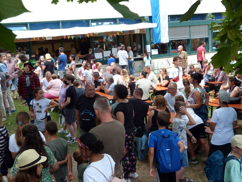Auf dem Schulfest 2022 war jede Menge los, auf dem "grünen Pausenhof". Nachdem wir als Standort vom Schulhaus Niedernberg wieder nach Großwallstadt gewechselt hatten und gutes Wetter angesagt war, schöpften Elternbeirat und Schüler aus dem Vollen und stellen sich auf einen Nachmittag im Freien ein. Die "Versorgungsstation" konnte die vielen Gäste mit Wurst im Weck, Kaffee und Kuchen, sowie Eis in großen Mengen versorgen. Die Schüler hatten mehrere Geschicklichkeits-Parcours rund um Wasserspiele, Dosen- und Papierfliegerwerfen und eine "Nagelstation" aufgebaut. Eröffnet wurde das Fest durch den Chor der Grundschule und Musikstücke der Bläserklasse. Für einen artistischen Höhepunkt sorgte die Zirkus AG mit der Vorführung in der Schulturnhalle. Hinter dem "Weiterlesen" gibt es eine Bilderserie vom Schulfestnachmittag.