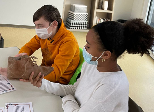 In der 4. und 6. Jahrgangsstufe steht das Thema Mittelalter an und die Schüler der KDS tauchen dann immer ab, ins Leben von Rittern, Bauern und Bürgern der Zeit. Mit Kisten voller mittelalterlicher Kleidung, Rüstungen und auch Waffen (da sind wir alle sehr, sehr vorsichtig!) zeigt Volker Knüpfing den Schülern Besonderheiten ("...wo sind die Hosentaschen?"), lässt anprobieren (z.B. ein Kettenhemd und Eisenhut) und holt Vorwissen aus dem Unterricht ab. Alltagsprobleme werden gelöst - wie kommen ich aus so einer Rüstung wieder raus! - und modische Trends des Mittelalters besprochen, denn "...der Stoff fühlt sich seltsam an." Wir hoffen alle hatten Spaß, auch die Lehrkräfte, und die Vergangenheit anschaulich erlebt.