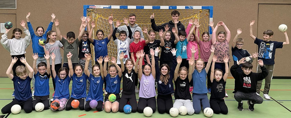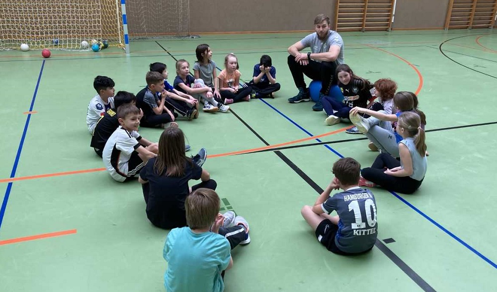Heute stand für die Schüler der dritten Klassen eine Trainingseinheit mit den beiden Handballprofis Florian Mohr & Moritz Klenk vom TV Großwallstadt auf dem Plan. Nach dem gemeinsamen Aufwärmen wurde zunächst die Reaktionsfähigkeit geschult und Stabilationsübungen durchgeführt. Anschließend wurde sich eifrig eingepasst und immer wieder kleine Wettkämpfe eingebaut. Im weiteren Training wurde auch das zielgenaue Werfen geschult. Die Kids hatten sichtlich Spaß ihr Können den Profis zu zeigen. Vielen Dank an Florian & Moritz für die tolle Trainingseinheit. Nach den Ferien lassen die Viertklässer den Handball fliegen.