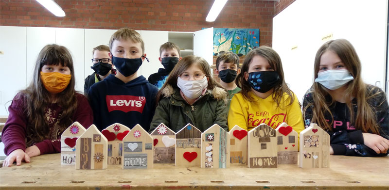 So sehr "home sweet home" das Thema der Holzhäuser war, so sehr haben sich die Schüler der 4a auch gefreut, dass der WG-Unterricht mal nicht "@home" stattgefunden hat, sondern sie wieder in der Schule werken durften. Die Schüler sind mächtig stolz auf ihre Häuser.