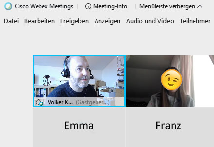 Die Lehrer der KDS haben nun die Möglichkeit über die Videokonferenzsoftware Webex direkt und datenschutzkonform mit ihren Schülern in Kontakt zu treten. Einige Mittelschulklassen machen davon schon Gebrauch, z.B. die 10bM im Fach Englisch, die Aufgaben in einer Morgenrunde bespricht und später, nach einer Arbeitsphase der Schüler zu Hause diese gemeinschaftlich vergleicht. Klassen, die nur unter das "Distanzlernen" fallen, wie die 8M haben sich gestern auch virtuell getroffen und die neuen Möglichkeiten erkundet.