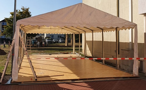 - der Mensabetrieb findet in Schichten statt, das neue Essenszelt wird durch die Klassen 9 und 10 belegt.
