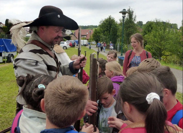 Die Kardinal Döpfner Schule folgte letzten Montag der Einladung des Mömlinger Bürgermeisters Siegfried Scholtkas zur 1200-Jahrfeier der Gemeinde. Die Klassen konnten sich auf dem Festgelände im Ortsinneren nicht nur am Karussell (für die Kleinen) und beim Autoskooter (für die Großen) vergnügen, sondern auch eine kleine Zeitreise unternehmen. Die historischen Gruppen zeigten nicht nur Helme und Kettenhemden aus dem Mittelalter, sondern auch das Lagerlegen eines Regiments zur Zeit des 30-jährigen Kriegs (unser Bild links) und beantworteten neugierige Fragen der Schüler. Die KDS möchte sich an dieser Stelle herzlich bei der Gemeinde Mömlingen für die Einladung und die zahlreichen Frei-Bons für Popkorn, Zuckerwatte, Süßes und Fahrgeschäfte bedanken.