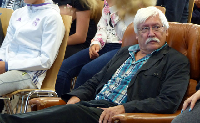 Nachdem sich Rüdiger Schnabel bereits letzte Woche mit einer kleinen Feier im Kreise des Kollegiums verabschiedet hatte und symbolisch Kreide, Schwamm und Tafellappen niederlegte, wurde er am Donnerstag noch von seiner Klasse verabschiedet. Mit einer musikalischen Nummer und dem gemütlichen Ausscheiden im Sessel, versuchte die 7M ihm den Übergang in die Pension so leicht (oder auch schwer) wie möglich zu machen.