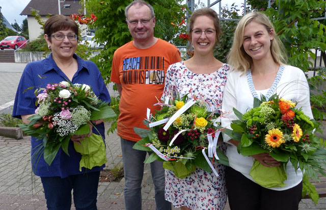 Von links nach rechts: Helga Link, Fachlehrerin für katholische Religion, wird ab nächstem Schuljahr keine Klassen an der KDS mehr unterrichten. Frau Link hat über viele Jahre einen Teil der Schüler in der Mittelschule begleitet. Christian Petersen war der KDS seit dem Halbjahr zugeteilt und übernahm neben Einsätzen an anderen Schulen Unterricht in der Mittelschule. Miriam Baumann führte zuletzt eine dritte Klasse in der Grundschule und wechselt jetzt in den Landkreis MSP. Susanne Klinger unterrichtete zuletzt in der fünften Klasse. Sie bleibt dem Landkreis Miltenberg erhalten, wechselt jedoch in die Mittelschule nach Bürgstadt.