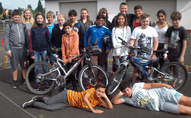 Zum Schuljahresende nahmen die Schüler der 6. Jahrgangsstufe mit ihrer Lehrerin Frau Klinger der Schule Großwallstadt/Niedernberg an einem Fahrradturnier teil. Dabei sollten die Schüler einerseits auf die Notwendigkeit eines verkehrssicheren Fahrrads aufmerksam gemacht werden, andererseits sollten sie den sicheren Umgang mit ihrem Rad üben und demonstrieren. Dazu sind die Hindernisse entsprechend aufgebaut, so dass sie unter anderem das Anfahren, den sicheren Spurwechsel und eine Vollbremsung absolvieren müssen. Auf dem Übungsplatz am Sportgelände wurde deshalb von der Klasse 9bM mit Klassenleiter U. Keßler und Hausmeister D. Maier ein Fahrradparcours mit acht Hindernissen aufgebaut, den es von den Teilnehmern möglichst fehlerlos zu bewältigen galt. Vor dem Start wurden zunächst alle Räder auf ihre Verkehrssicherheit hin überprüft.