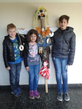 Die Schüler der 5. und 6. Klasse haben dieses Jahr am "Kids for Kitz" Programm teilgenommen (http://action-for-kitz.de/action_for_kitz.html). Um Rehkitze in den Feldern zu schützen, bauten die Schüler Vogelscheuchen, die durch ihre reflektierenden Wimpel wilde Tiere abhalten sollen, sich auf den Feldern zu verstecken. Anbei seht ihr zwei der Scheuchen. Natürlich gab es noch mehr davon. Die Schüler können alle Bilder im Klassentauschverzeichnis der Schule einsehen.