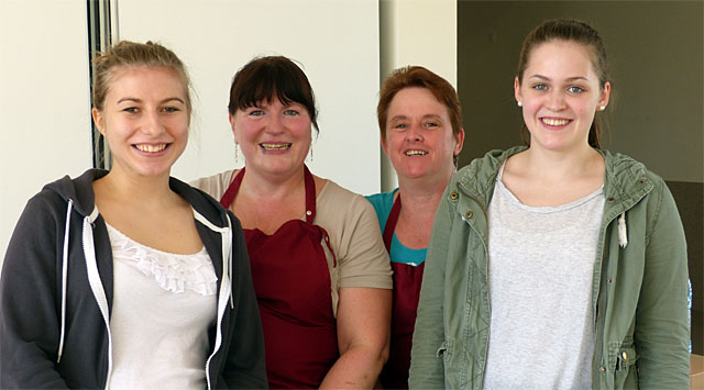 Bevor am kommenden Freitag die Eröffnung der Mensa im "Südflügel" ganz offiziell gefeiert wird, möchten wir hier kurz das Küchenteam vorstellen, das seit beginn der letzten Woche unsere Schüler bereits mit dem Mittagstisch versorgt. Von links nach rechts: Lea Hörst, Caroline Sehling, Martina Reinhardt und Tina Schneider.