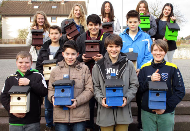 Im Werkunterricht bauten die Schüler/innen der 7. Jahrgangsstufe in den vergangenen Wochen Nistkästen für höhlenbrütende Vögel. Da in unserer Landschaft alte oder morsche Bäume mit Hohlräumen aus Sicherheitsgründen gefällt werden, fehlen den höhlenbrütenden Vögeln ausreichende Nistmöglichkeiten. Um die Ansiedlung von insektenvertilgenden höhlenbrütenden Vögeln zu fördern, ist das Aufhängen von künstlichen Nisthilfen ein wichtiger Beitrag zum Arten- und Naturschutz. Damit wird dem ökologisch problematischen Einsatz von Insektiziden entgegengewirkt und wir können uns über den Gesang der Vögel erfreuen.