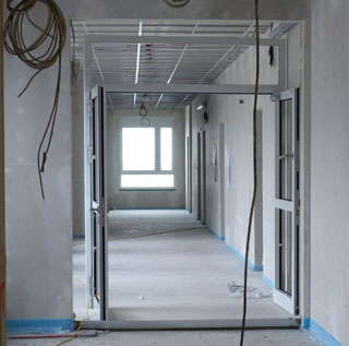 Die Baumaßnahmen am neuen "Nordflügel" im ersten Stock der KDS nehmen konkrete Formen an. In den letzten Wochen wurden Türen und Fenster eingepasst und am Innenausbau gearbeitet. Im Moment laufen die Verputzungsaufgaben an der Außenfassade. Wer bereist einen kleinen Rundgang gewagt hat, bemerkte Räume links und rechts des Gangs - die "Säulen" auf der erste Stock ruht ermöglichen diesen Raumgewinn.